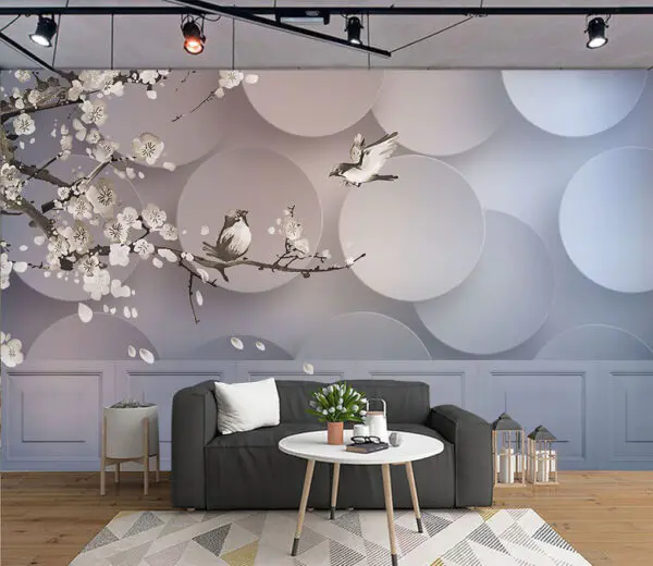 33.31 zł19.99 złFototapeta Fototapeta ścienna z ptakami na gałęzi z białymi kółkami i białymi kółkami