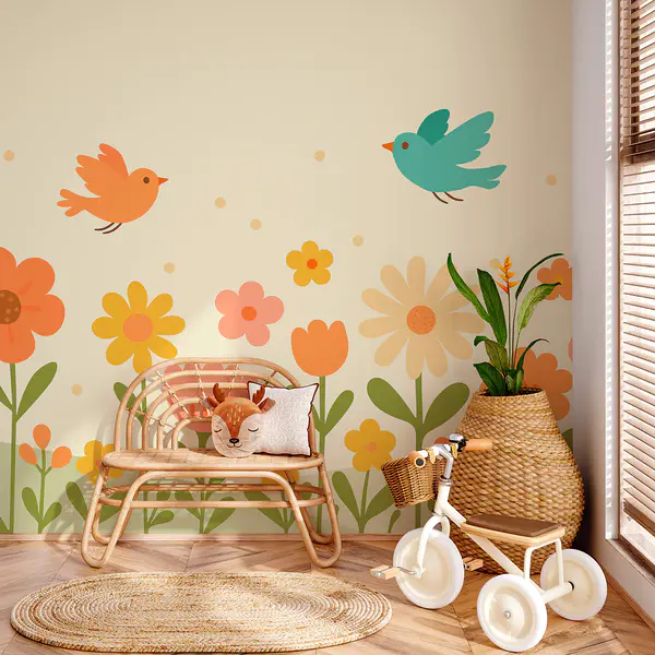 • Promocja -40% Fototapeta Fototapeta Ptaki latające nad kwiatami (SKU: t00068)