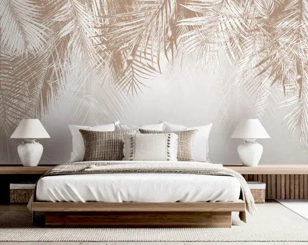 35.08 zł21.05 złFototapeta Białe i brązowe tło z liśćmi palmy
