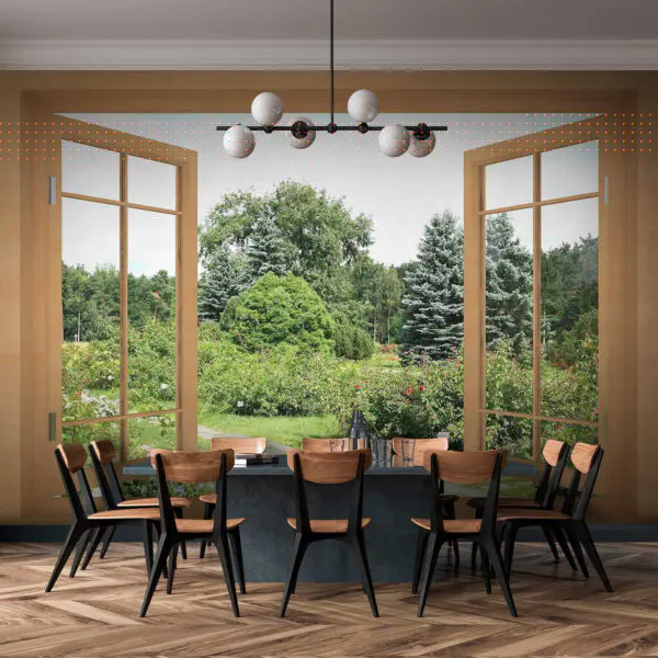 Fototapeta Fototapeta Okno z drzewami i ścieżką przez nie (SKU: u60673)