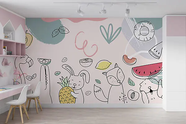 35.08 zł21.05 złFototapeta Zwierzęta z kreskówek trzymające owoce