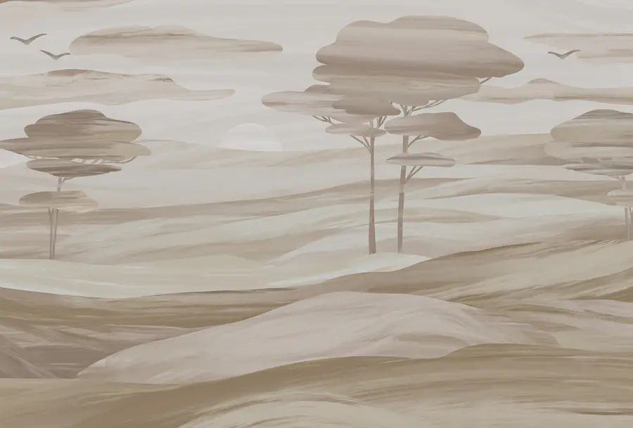 Fototapeta Krajobraz z drzewami i wzgórzami