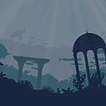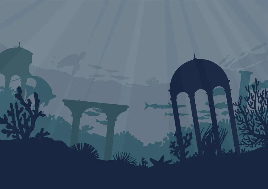 Fototapeta Sylwetka budynku i roślin morskich