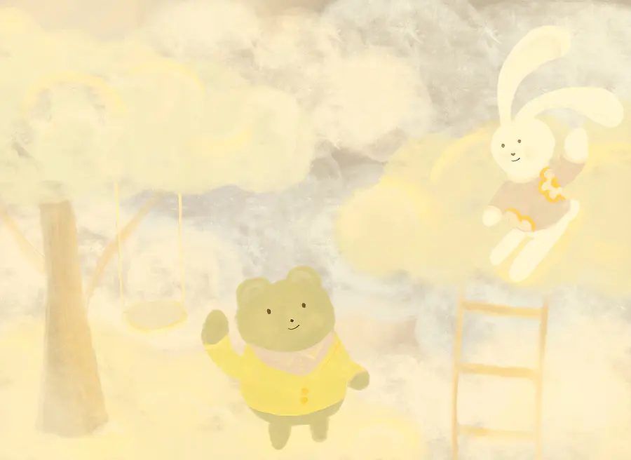 Fototapeta Kreskówkowy miś i króliczek w chmurach