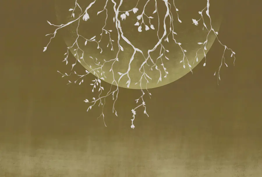 Fototapeta Gałęzie drzew z liśćmi i księżycem