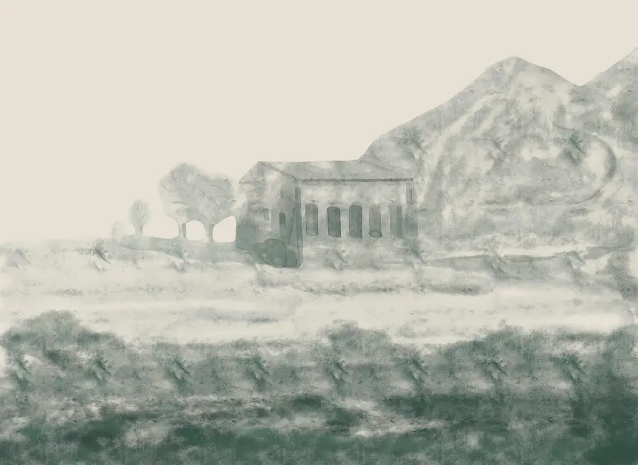 Fototapeta Obraz przedstawiający budynek i górę
