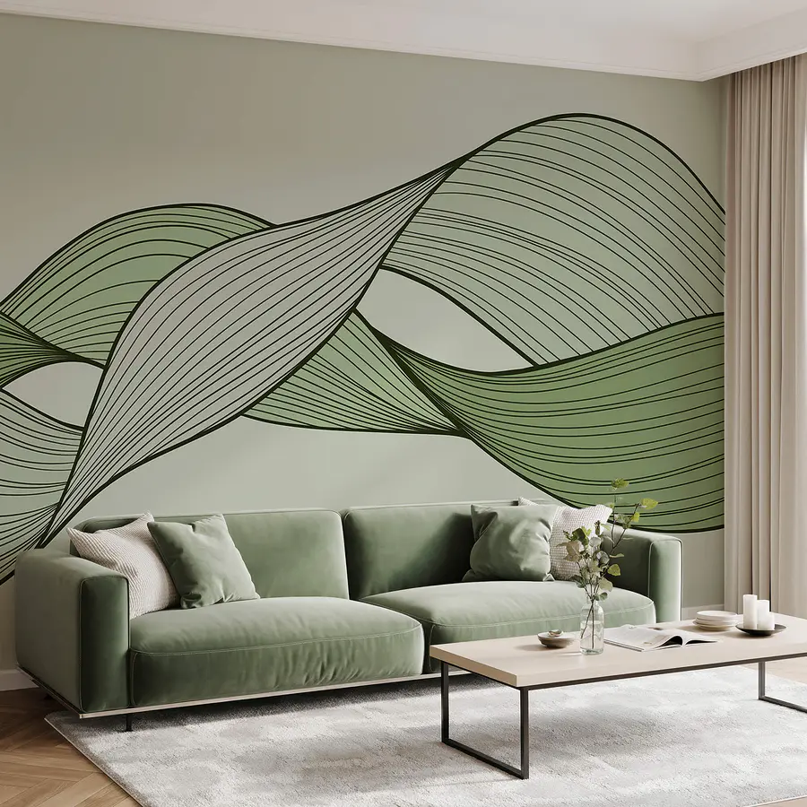 Fototapeta Zielone i czarne faliste linie