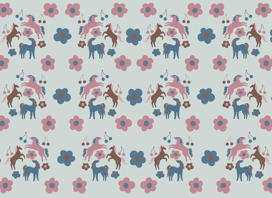 Fototapeta Wzór koni i kwiatów