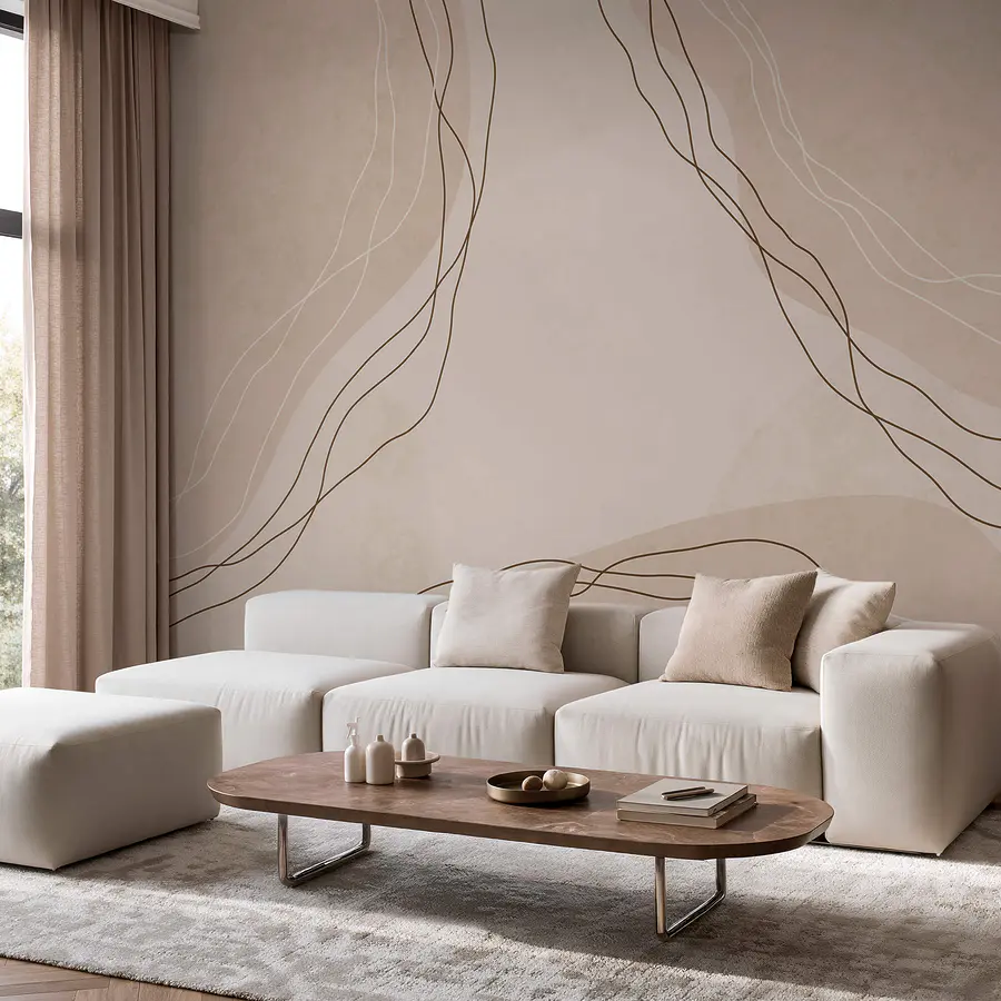 Fototapeta Białe i brązowe linie na beżowym tle