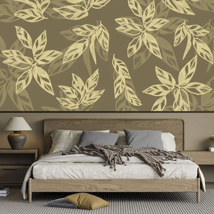 Fototapeta Wzór liści na brązowym tle