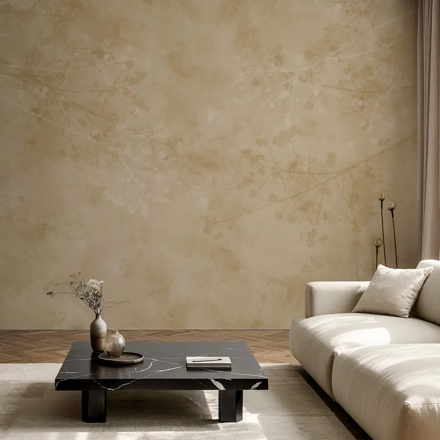Fototapeta Beżowe tło z gałęziami i liśćmi