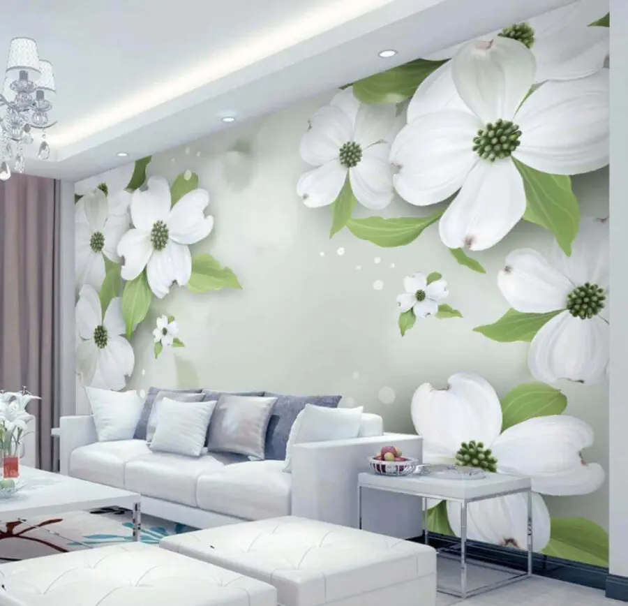 33.33 zł20.00 złFototapeta Biała ściana z kwiatami i liśćmi