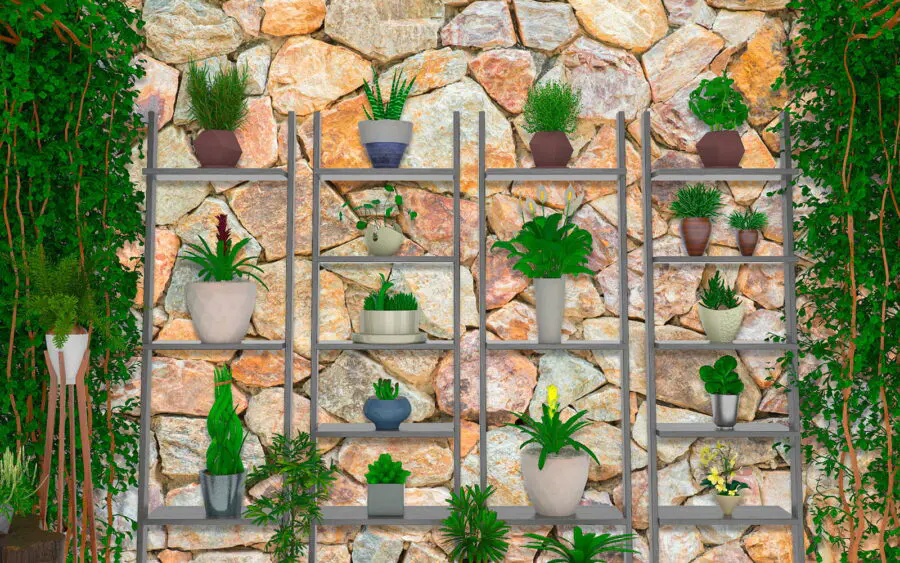 Fototapeta Grupa roślin na półkach