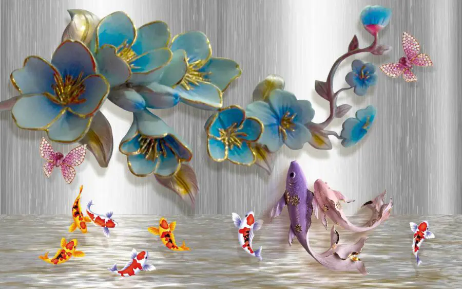 Fototapeta Grupa ryb i kwiatów