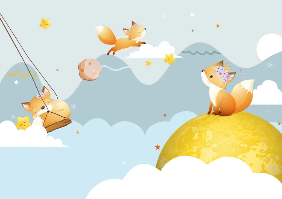 Fototapeta Kreskówka przedstawiająca lisy na księżycu