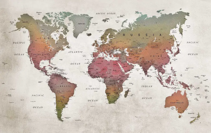 Chcesz nadać swojemu pokojowi odrobinę klimatu podróży? Sprawdź tę oszałamiającą tapetę ścienną "Mapa świata"! Wyobraź sobie, że budzisz się z przyciągającą wzrok mapą podkreślającą wszystkie te niesamowite miejsca, o których odwiedzeniu marzysz. To coś więcej niż dekoracja - to codzienne przypomnienie o czekających na ciebie przygodach. Zarówno dzieci, jak i goście będą do niej przyciągani, wzbudzając ciekawość i zachwyt. Uruchom swoją wyobraźnię i wskaż przyszłe podróże bez wychodzenia z domu. Idealny do salonu, gabinetu, a nawet zabawnego pokoju dziecięcego! Miękkie, ziemiste odcienie uzupełnią każdą kolorystykę. Kto by pomyślał, że geografia może być tak szykowna?