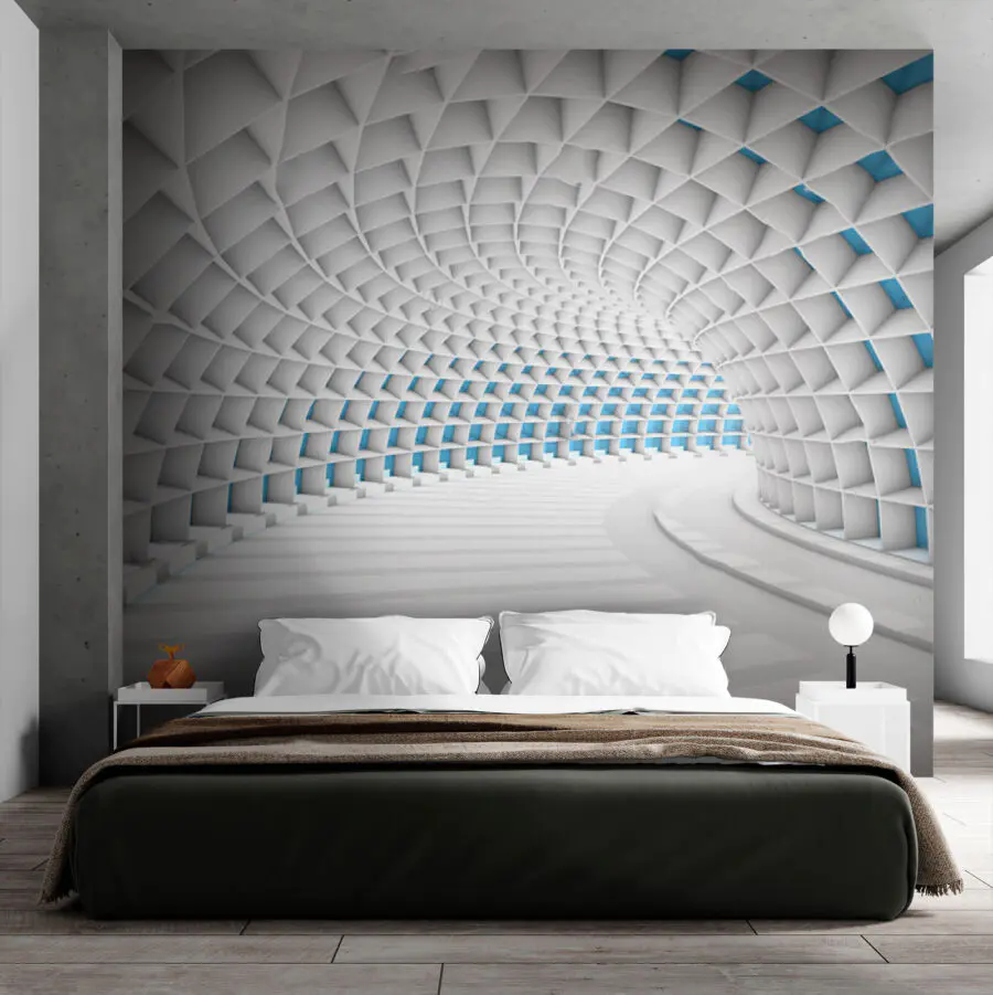 Fototapeta Biały tunel z niebieskimi kwadratami