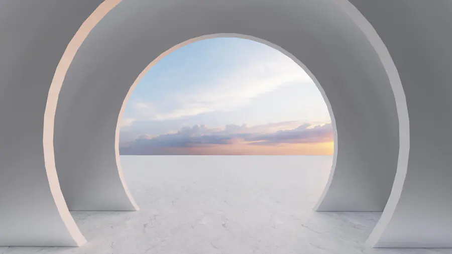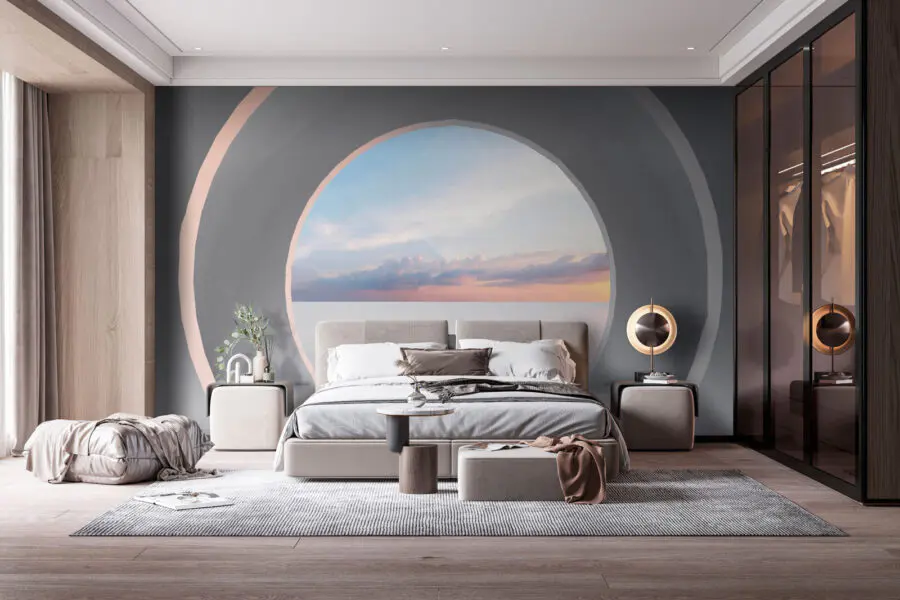 Fototapeta Biały pokój z okrągłymi drzwiami