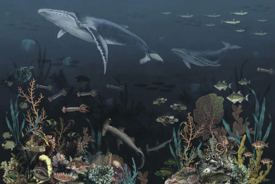 Fototapeta Grupa ryb i wielorybów pływających w oceanie