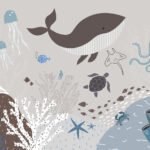 Fototapeta Morskie życie z wielorybem i wodorostami