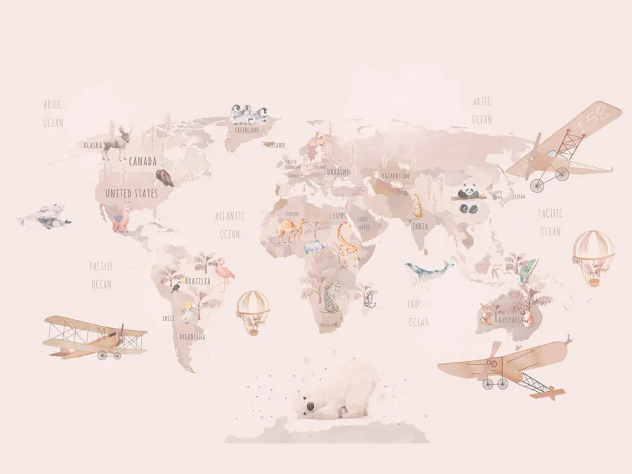 33.33 zł20.00 złFototapeta Mapa świata ze zwierzętami