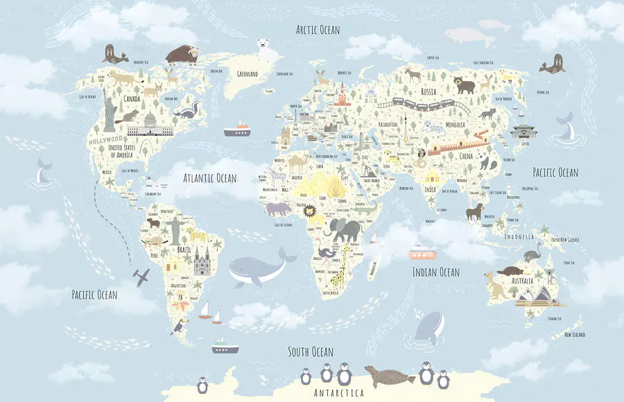 33.31 zł19.99 złFototapeta Mapa świata ze zwierzętami