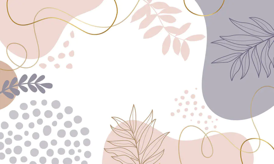 Fototapeta Białe tło z różowymi, niebieskimi i fioletowymi kształtami i liśćmi