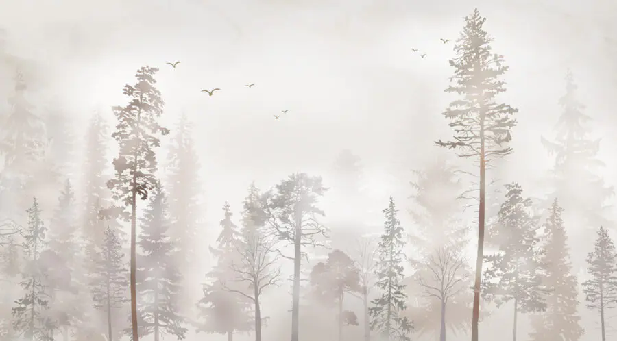 34.55 zł19.00 złFototapeta Akwarela drzew i ptaków lecących nad zamglonym lasem