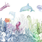 Fototapeta Morskie życie z rybami i meduzami