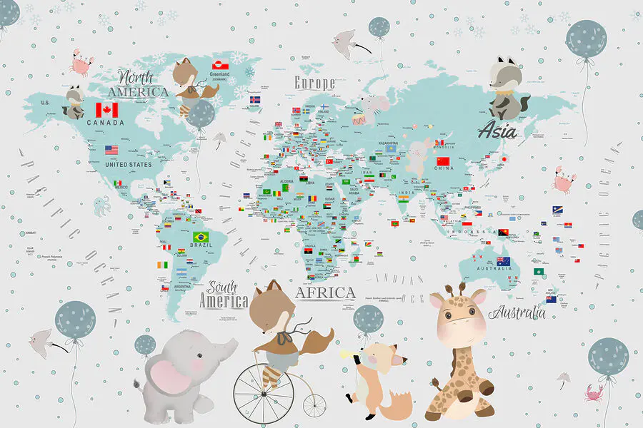33.31 zł19.99 złFototapeta Mapa świata ze zwierzętami