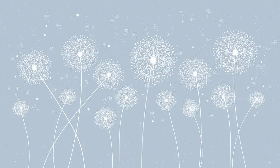 Fototapeta Białe mlecze na niebieskim tle