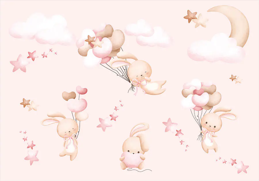 33.33 zł20.00 złFototapeta Grupa różowych chmur i króliczek trzymający balony