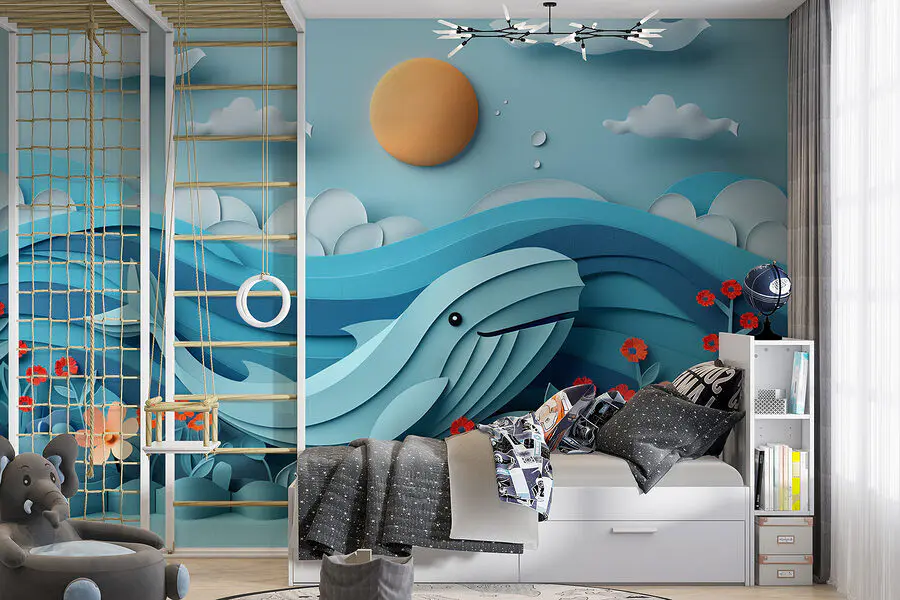 Fototapeta Wycięty z papieru wieloryb w oceanie