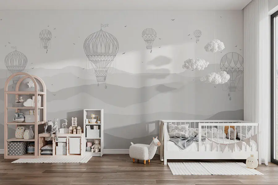 33.33 zł20.00 złFototapeta Grupa balonów na ogrzane powietrze na niebie nad górami