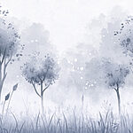 Fototapeta Mglisty krajobraz z drzewami i trawą