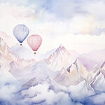 Fototapeta Grupa balonów na ogrzane powietrze na niebie nad górami