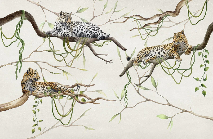 Fototapeta Grupa lampartów leżących na gałęziach