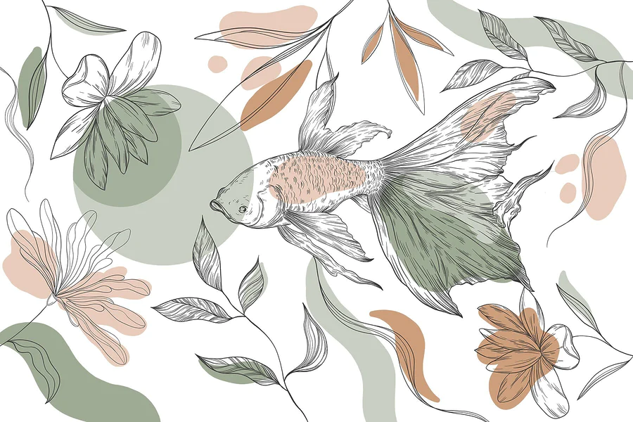 Fototapeta Ryby i rośliny na białym tle