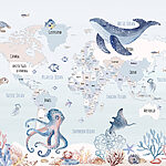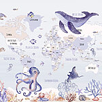 Fototapeta Mapa świata ze zwierzętami morskimi