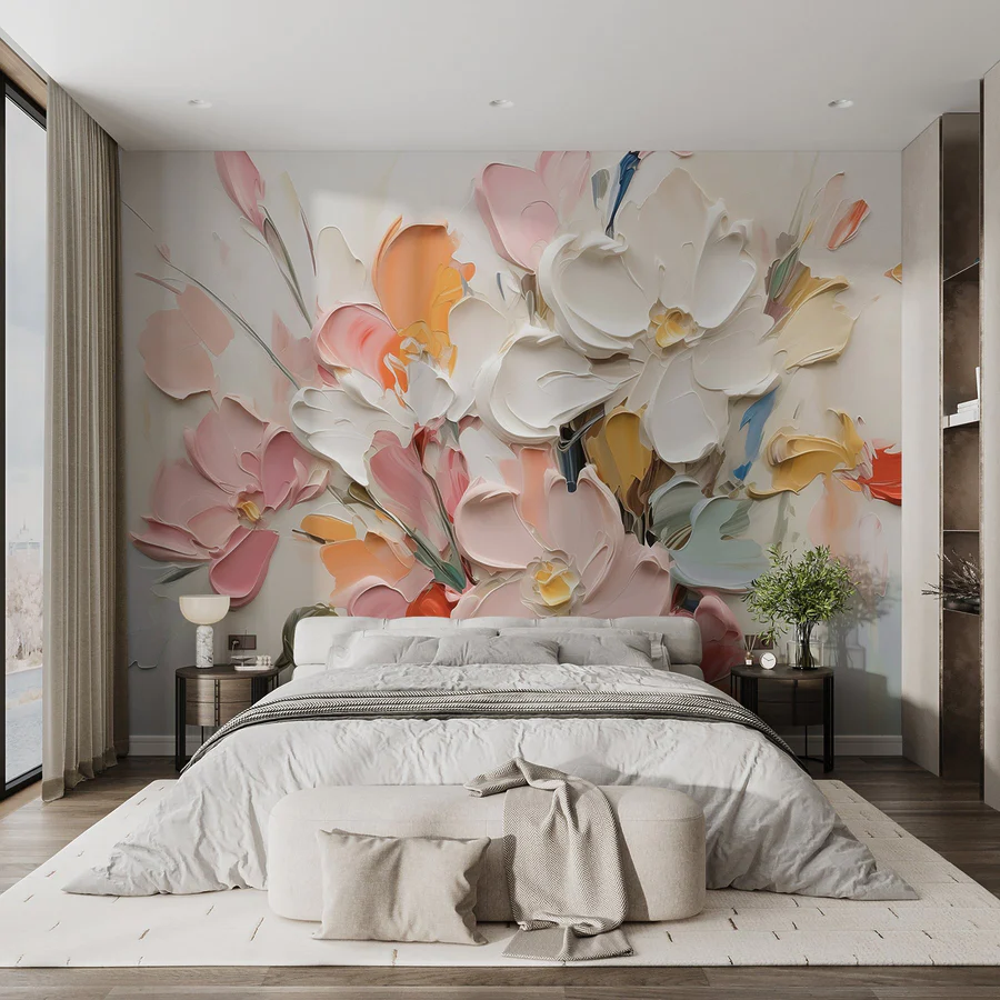 Fototapeta Malowanie kwiatów na białej powierzchni