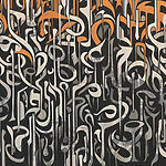 Fototapeta Czarno-biała grafika z pomarańczowymi i białymi liniami