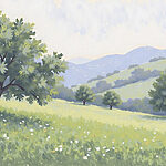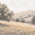 Fototapeta Krajobraz z drzewami i wzgórzami