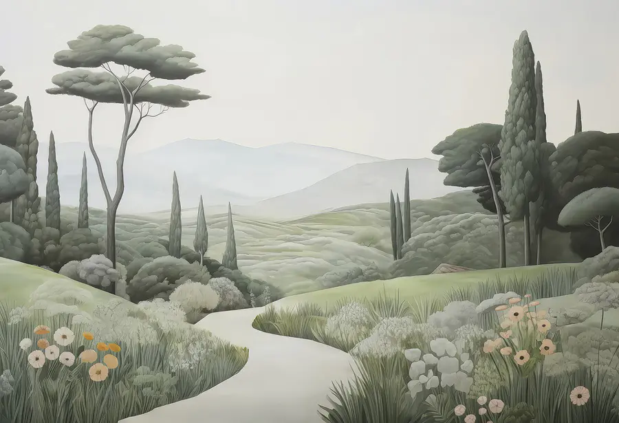 Fototapeta Krajobraz ze ścieżką i drzewami