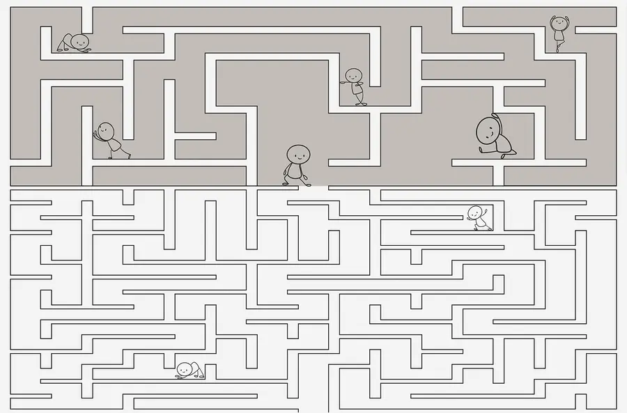 Fototapeta Labirynt z ludźmi chodzącymi po ziemi