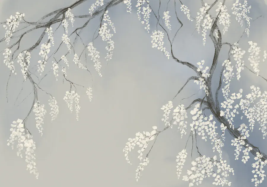 Fototapeta Gałąź drzewa z białymi kwiatami