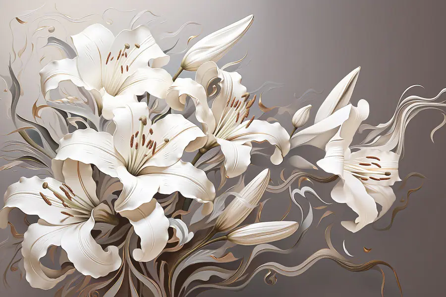 Fototapeta Białe kwiaty z brązowymi i białymi zawijasami