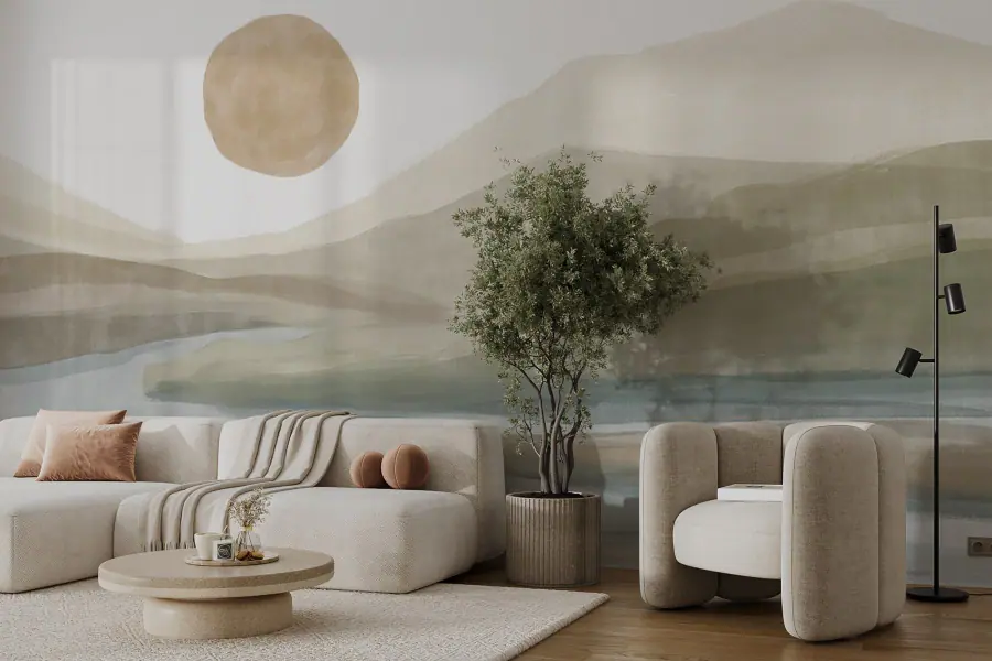 Odmień swoją przestrzeń dzięki tej marzycielskiej akwareli przedstawiającej rzekę i góry. Wyobraź sobie, że popijasz poranną kawę, będąc delikatnie szturchanym przez uspokajające odcienie zieleni i błękitu. To jak przeniesienie spokojnego krajobrazu do swojego domu. Miękkie pociągnięcia pędzla niemal szepczą "ucieczka na łono natury" za każdym razem, gdy na nią spojrzysz. Idealna do przytulnego salonu lub spokojnej sypialni, ta fototapeta ma ten urok, który sprawia, że chcesz odpocząć i marzyć. Pomyśl tylko - jakie piękne tło dla przytulnych rozmów lub leniwych popołudni. Dzięki subtelnemu blaskowi słońca, ta fototapeta może po prostu zainspirować do małej przygody na świeżym powietrzu. Dlaczego więc nie pozwolić, by spokój ogarnął twoje ściany?