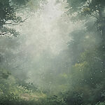 Fototapeta Mglisty las z drzewami i roślinami