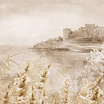 Fototapeta Akwarela przedstawiająca zamek i kwiaty
