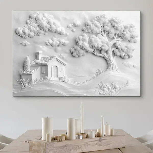 98.34 zł59.00 złObraz Biała grafika ścienna z domem i drzewem